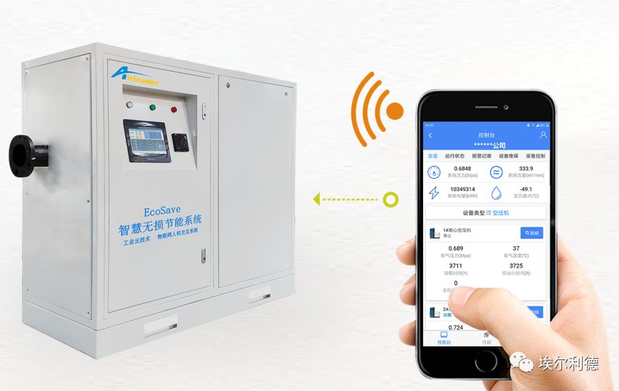 EcoSave智慧無損節(jié)能系統是融合了AI人工智能技術,無線智能聯控技術和云計算于一體的高新技術產品。通過在空壓機站房壓縮空氣主管上加裝EcoSave智慧無損節(jié)能系統,并通過無線智能模塊與每臺空壓機進行無線聯控,無需布線。